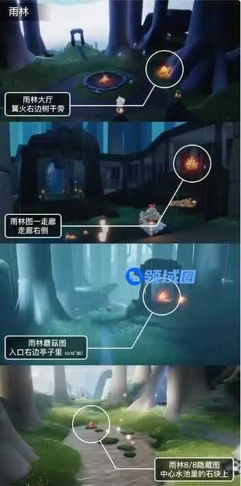 近日共有三组额外的大蜡烛,分别位于云野、雨林和峡谷,具体的位置下图所示:
