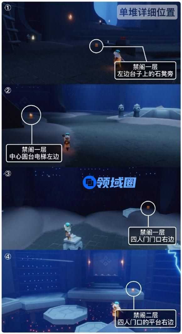 光遇3月14日季节蜡烛主要分布在禁阁地区,具体分布在以下四个地点:
