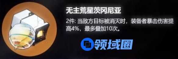 2件套:当敌方目标被消灭时,装备者暴击伤害提高4%,最多叠加10次。