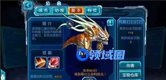 想要获得黑洞另一端的特殊能量,必须要击败徘徊在黑洞边缘的魔王BOSS,公会所有成员每人每天有2次挑战机会。