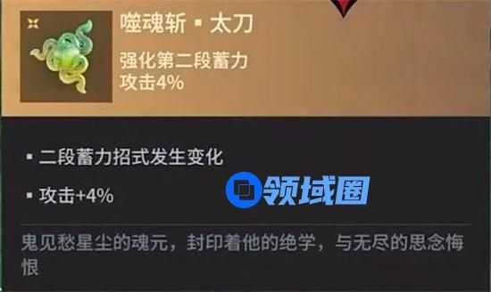 魂玉效果:改变太刀普通攻击第三下蓝霸体的招式(类似端游的青鬼),命中后获得伤害值65%的回复效果。