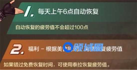每天早上的6点当中,游戏就会瞬间使疲劳值恢复到100点。