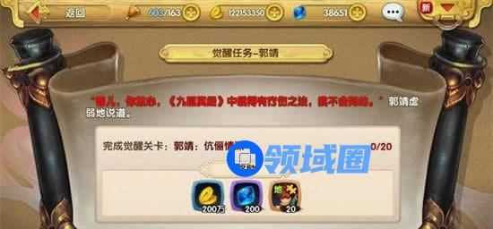 在郭靖英雄界面点击“觉醒”按钮就进入觉醒任务界面。
