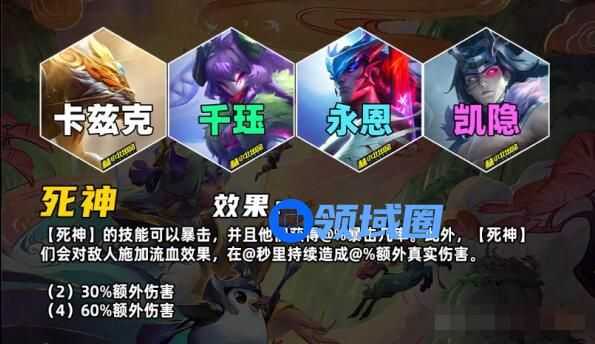 【死神】的技能可以暴击,并且他们会获得额外暴击几率。此外,【死神】们会对敌人施加流血效果,在n秒里持续造成额外真实伤害