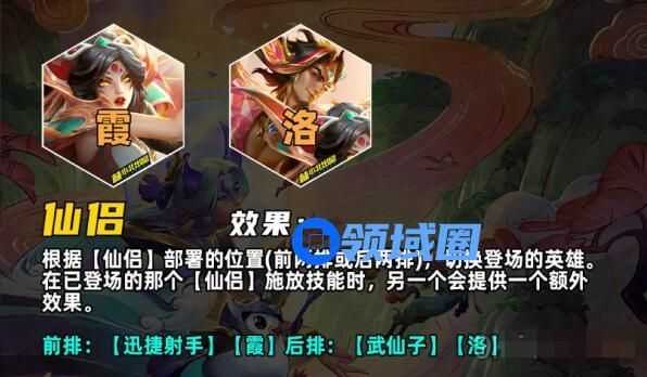 当一名登场的仙侣施法时,另一半会在场边提供额外增益