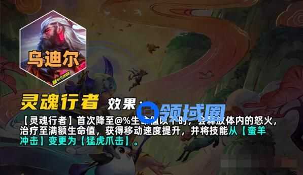 首次生命值降到某一阈值时,会释放体内的怒火,治疗到满血,并且移动速度提升,技能从【蛮羊冲击】变更为【猛虎爪】