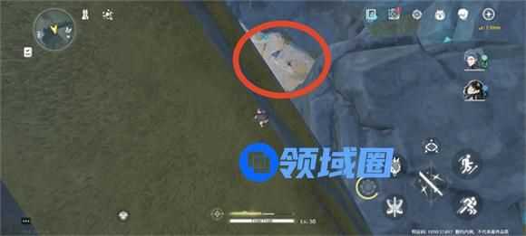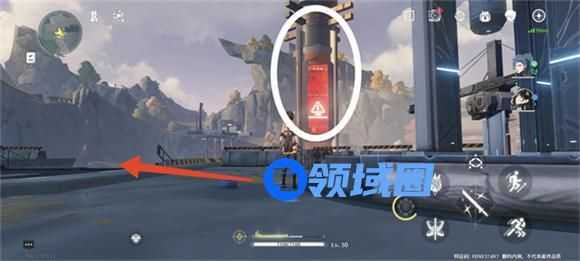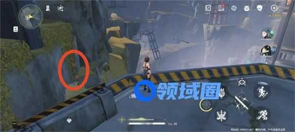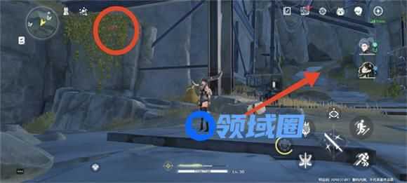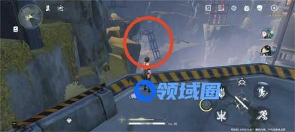 5、返回中型信标,走到刚才经过的围墙,往红圈处飞。