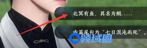 3、前往指定地点回答问题,选择【北冥有鱼,其名为鲲】。