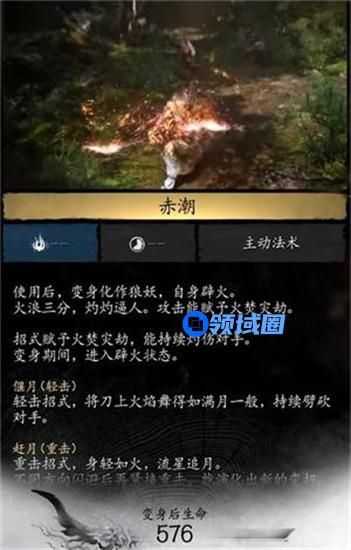 黑神话悟空赤潮效果怎么样?在黑神话悟空这款最近爆火的游戏中,有个非常好玩的法术,即赤潮效果,对于这个效果它赋予了玩家化身为狼妖的神奇能力,一旦启用这个法术,玩家将进入辟火状态,得以运用一系列特定的战斗招式,在变身状态下,这些独特招式不仅能为玩家所用,其攻击还能带来火焚灾劫的效果,给对手造成持续灼伤,伤害还是非常高的,这种变身状态及其技能不仅为玩家提供了全新的战斗风格和策略选择,还显著提升了玩家在战斗中的灵活性和力量,使得玩家能够在对战中展现出更为强大和灵活的战斗能力,而今天将为大家详细的带来关于黑神话悟空赤潮效果介绍。,
