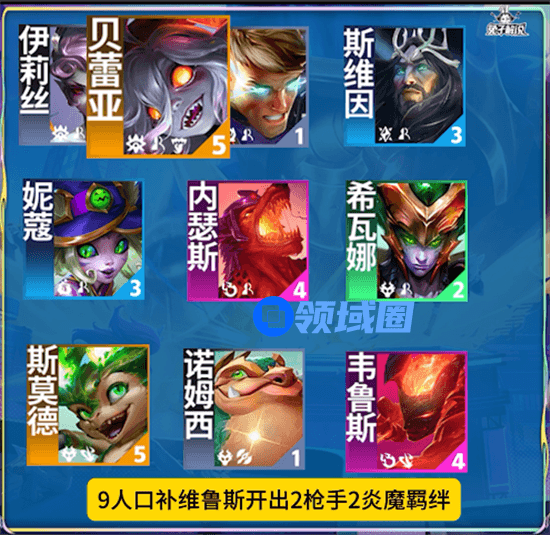 贝蕾亚来了替换低费卡。9人口补维鲁斯开出2枪手2炎魔羁绊。