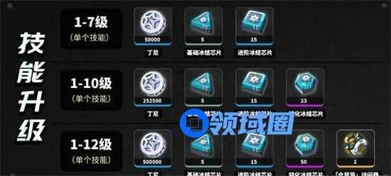 1、1-7级:丁尼*50000、基础冰结芯片*5、进阶冰结芯片*15