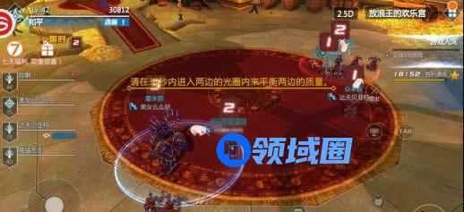 稍等片刻,游戏开始,两侧圆圈会刷出数量不同的小怪,队伍需要在30秒内进入圆圈来平衡数量。例如:蓝色圆圈处有2个小怪,红色圆圈处有3个小怪,这时头上有数字“1”的玩家就需要进入蓝色圆圈来平衡数量,其余人全部远离圆圈即可