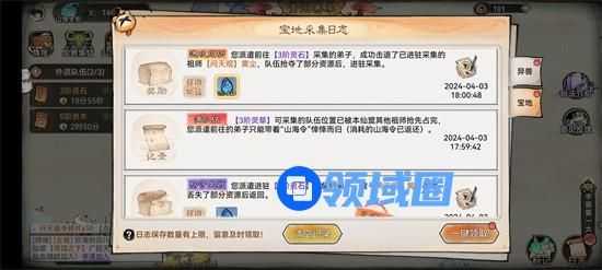 1-派遣弟子去采集资源;不限距离,不限级别,可意采集远距离的五阶资源。