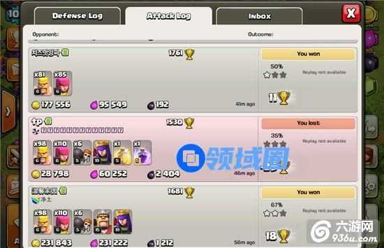 4、稳定性强:稳定性强是说这种进攻就算不理想,也能夺取一部分资源,只是拿多拿少的问题。 亏是一定不会的。 我列出的掠夺图多少可以说明问题,几乎都是双资源10w以上的,其中不乏双30,而没有摧毁率很低同时资源也很少的。前提是你会用屌丝流。