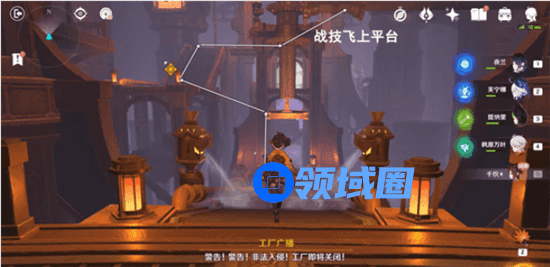 往地图的北方向头顶看,爬楼梯进入工厂,进入秘境。