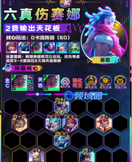 云顶之弈是一款回合制策略游戏,非常考验我们战术搭配。游戏中,玩家们通过搭配不同的角色阵容来与其他玩家进行对战。想要快速赢得战斗,阵容的搭配是关键。六真伤赛娜是一个非常好的上分阵容,不少小伙伴好奇是如何搭配的。为此,今天小编为大家带来了六真伤赛娜阵容羁绊搭配攻略,不要错过了。,