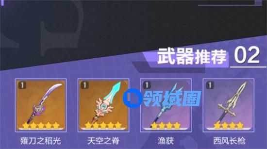 渔获:雷电将军元素爆发期间的所有伤害(第一刀与后续的普攻重击)均视为元素爆发伤害,且自身固有天赋对元素充能效率进行了二次利用,该武器是她在四星武器里较为合适的选择。