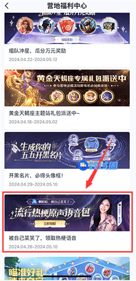 2、进入【每日福利】页面后,上划找到并点击进入【被自己的菜笑了,收到热梗语音】这个活动页面。