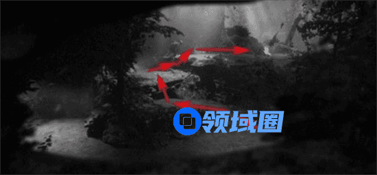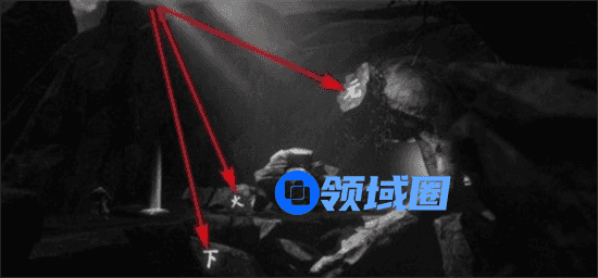 前方解谜,如下图箭头所指,谜底就在四周,是文字;