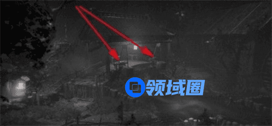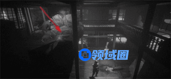 院子中,如下图,从下方走,砍断桥的柱子,桥塌了后,上面的敌人会摔死;
