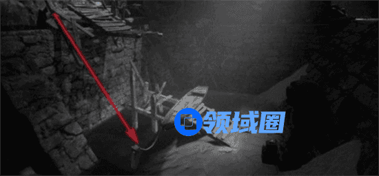 河床这里,如下图箭头所指,砍掉绳子后,激活机关使得河水上涨,然后上船;