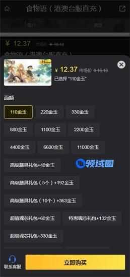 1、点击上方的充值入口进入食物语国际服充值的页面,充值的金额有很多种,玩家可以按照自己的需求去选择要充值的面额。