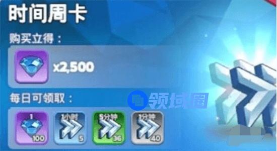 3、周卡:售价30元,购买后直接获得2500钻石,并且购买后的每天都能获得100钻石和多个加速器,有效期为7天。