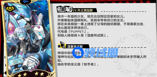 涅墨耳忒斯:作为佐原海夕的专属面具,通过获得护盾和【海之守护】来增加防御和伤害加成,随着意识等阶的提升,加成会越来越高,让队伍整体生存能力和输出都大大提升。