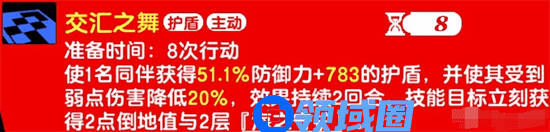 1.使一名同伴获得防御力加成的护盾值(防御力和技能等级越高加成越高),并使其受到弱点伤害降低20%,持续两回合。