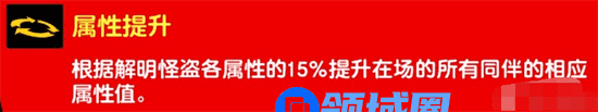 根据解明角色的各种属性的15%提升在场所有同伴对应的属性。
