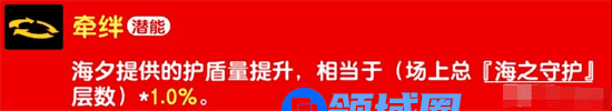 海夕提供的护盾量提升,相当于场上【海之守护】总和*1%。