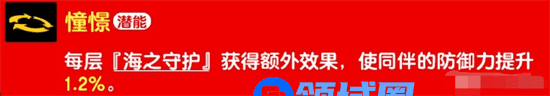 每层【海之守护】获得额外效果,使同伴的防御力提升1.2%。