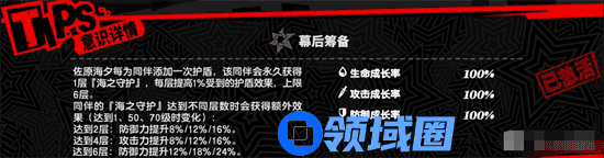 【海之守护】可以让佐原海夕给队友提供防御力和护盾生存能力,同时还可以增加伤害哦,不同的层数还有额外的收益。