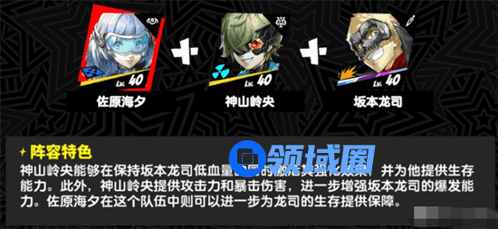 2.神山岭央可以增加给队友增加攻击力和暴击伤害,可以进一部增强坂本龙司的输出能力。