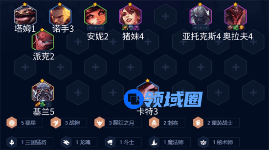 羁绊组成:任意福星卡福星天选,6福星 3战神 3猩红 2刺客 2重装战士