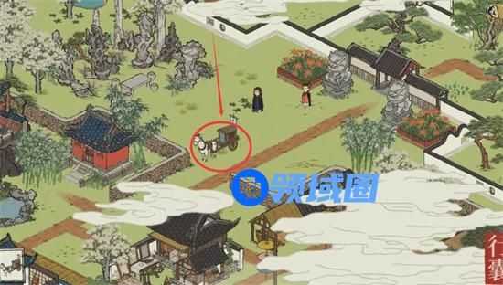 4、来回凤凰山的马车分别在朝园宝阁和草堂周围。