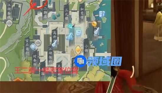 2、随后带着钥匙前往王二脚店的如下图所示的位置开启宝箱即可获得。