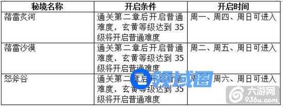 目前共有6个秘境,三个秘境在恒州,三个在乐州,秘境开放的时间也不相同。
