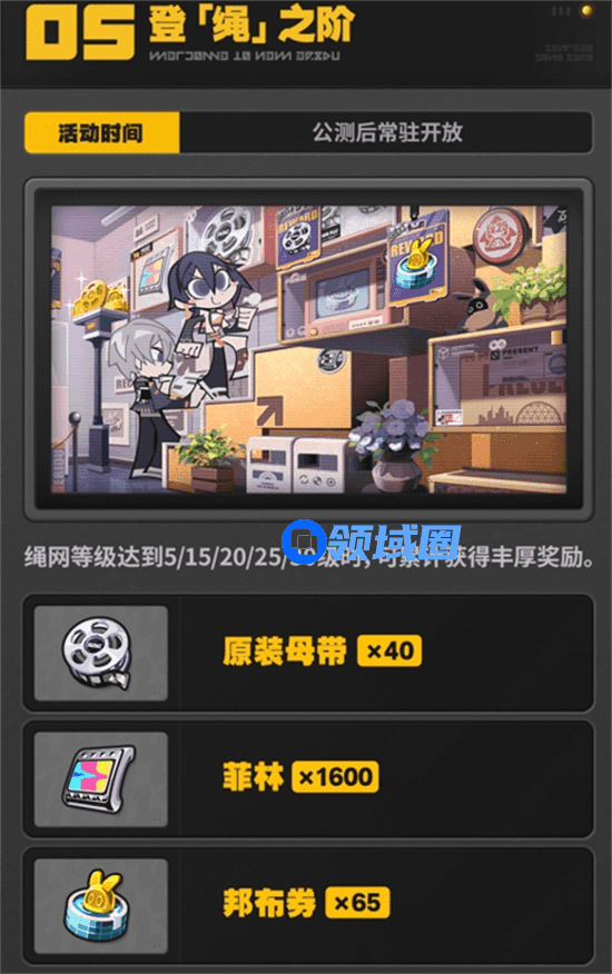 1.0版本开启后,绳匠可在游戏内累计免费获取[原装母带]*70、[加密母带]*20、[菲林]*1600、[邦布券]*80等奖励!