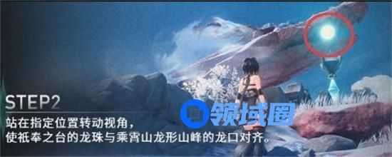 2、然后玩家需要找到一个指定的位置,将祗奉之台上面的龙珠和乘霄山龙头中的龙口对齐。