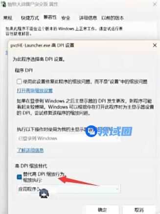 4.把下面的替代高DPI缩放行为打勾,并把下面的换成应用程序。