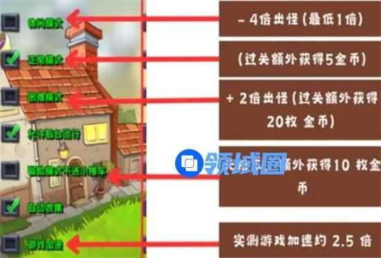 3、困难模式:+2倍出怪,同时通关后额外获得20枚金币。