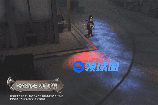 随身携带香薰手杖,挥动手杖产生监管者可见的香气轨迹,扩散的香气在接下来的3秒会留下踪迹。