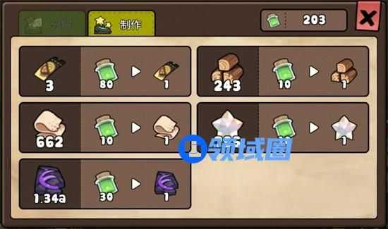 3、炼金转化的材料:一共有5种,分别是:特别票、木头、布料、星星与魔导器小碎片。(魔导具小碎片仅在解锁魔导具系统后才能进行转化)