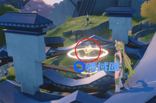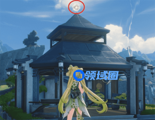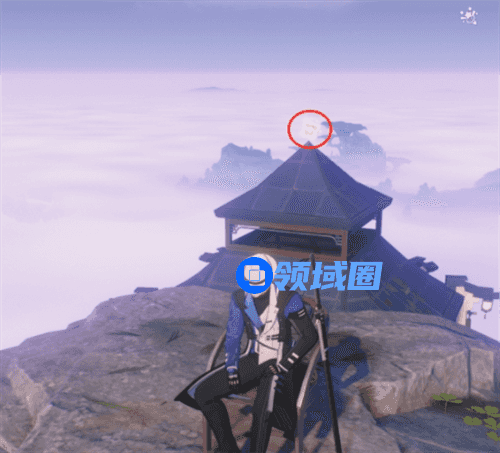2、第二个在这个岛上抓取左边的道具然后把右边这个石头打掉会出现一个风场飞上去就可以获取第二个声匣。