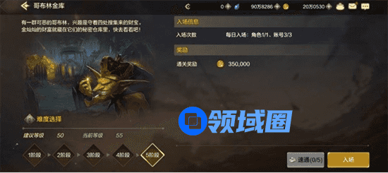 哥布林金库共分五个等级,等级越高,通关后获得的金币也就越多。