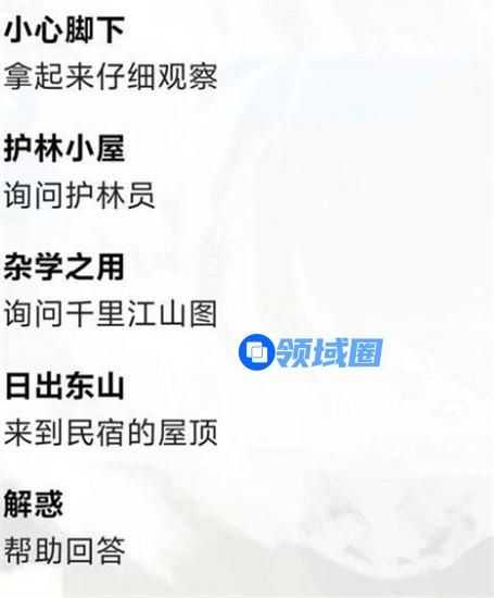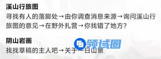 寻找有人的落脚处→由你调查消息来源→询问溪山行旅图的意见→在野外扎营→你找错了地方?