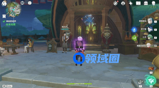 4、传送须弥城西南方向锚点,前往兰巴德酒馆二楼,在这里与赛诺对话;