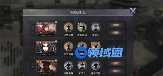 第一套推荐的阵容里需要将孙鲁班放在中军的位置,可携带美人计、当阳桥等战法。其中美人计的主要使用核心思路是爆破,可以加强武将战法的输出伤害。在大营的位置上可选择董白,战法可携带深谋、三术。其中前者可增加董白的伤害,后者则是减少敌方属性的。该武将自带的战法不但能够让敌人被诅咒,被负面效果缠身,而且还能直接降低敌方群体百分之十八的谋略伤害。董白的效果是能够叠加的,甚至可以一直持续到战斗结束。这个减伤效果可以与我们携带的两个战法相互配合,再加上孙鲁班本身的自带战法,能够最终让董白打出极其爆炸的输出。