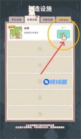 2、接着选择休息设施的页面,找到【扩建森林】的选项,消耗货币就能扩建。